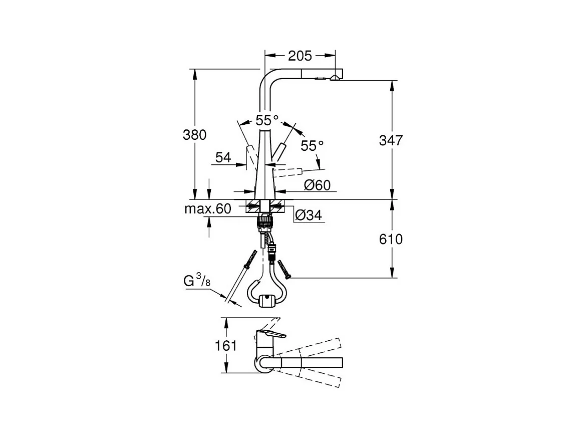 GROHE Essence mezclador de cocina tamaño XL Caño alto cromado extraíble