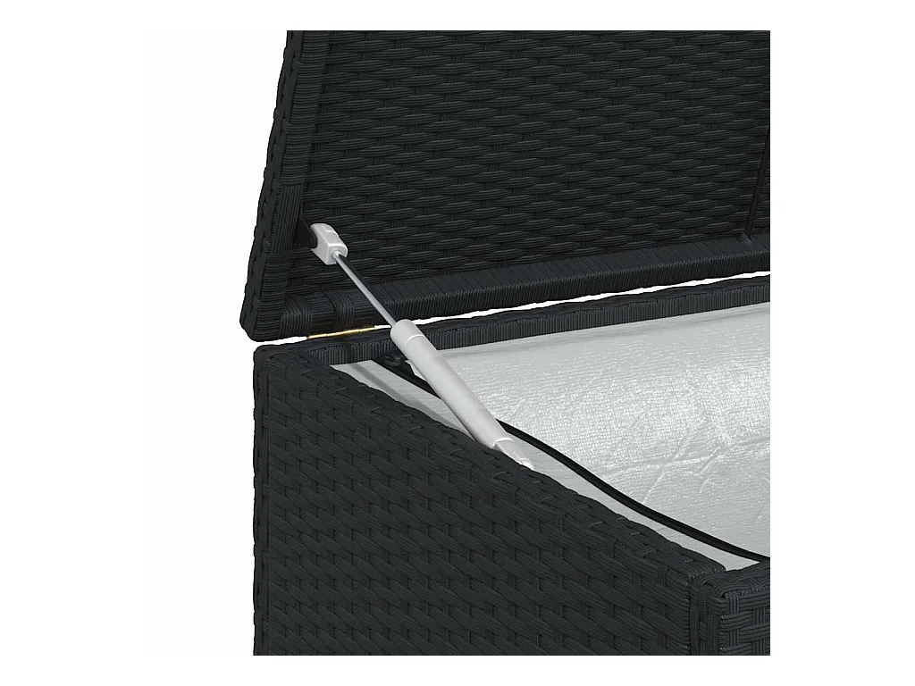 Evans Baúl para cojines de jardín ratán PE negro 145x100x103 cm
