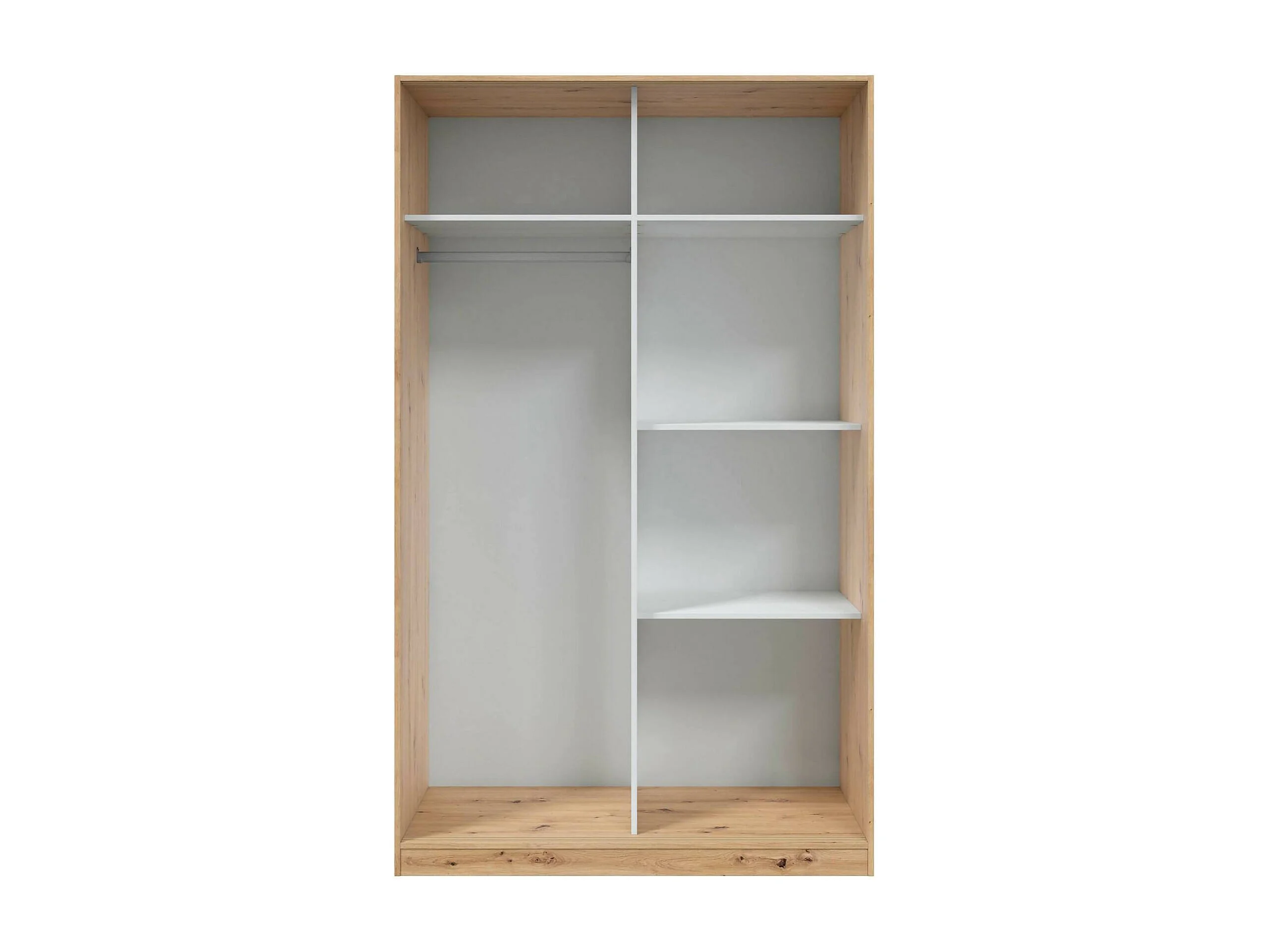 Guardarropa Waterbury, Armario dormitorio con 2 puertas correderas, Mueble con 3 baldas y barra perchero, 120x50h200 cm, Blanco y Roble Nodi
