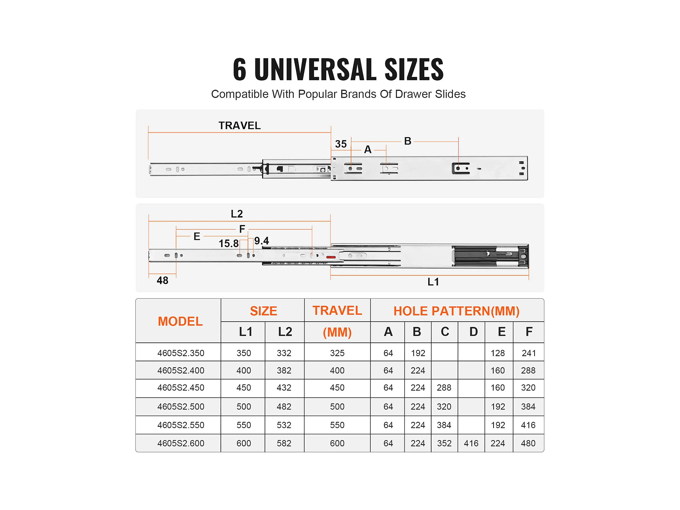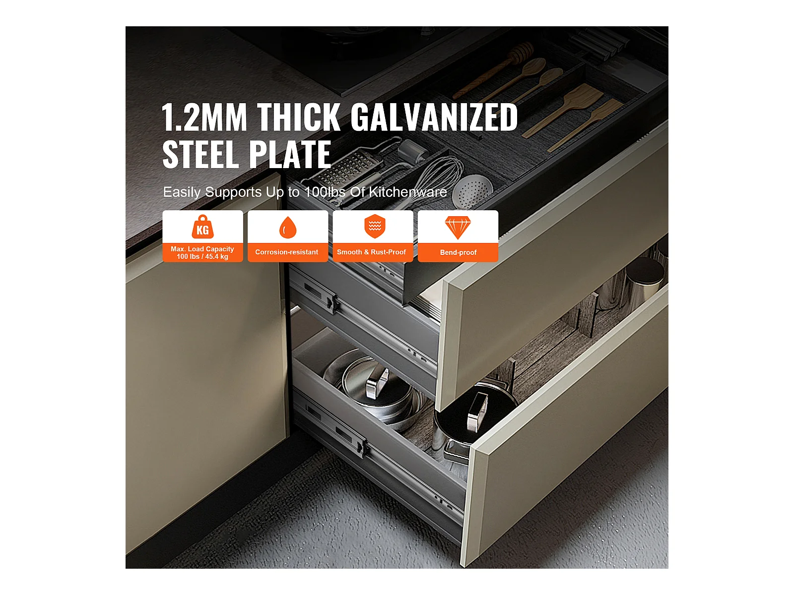 Guías de Cajón SucceBuy 406.4 mm 6 Pares con Rodamientos de Bolas, Extensión Completa de 45 kg
