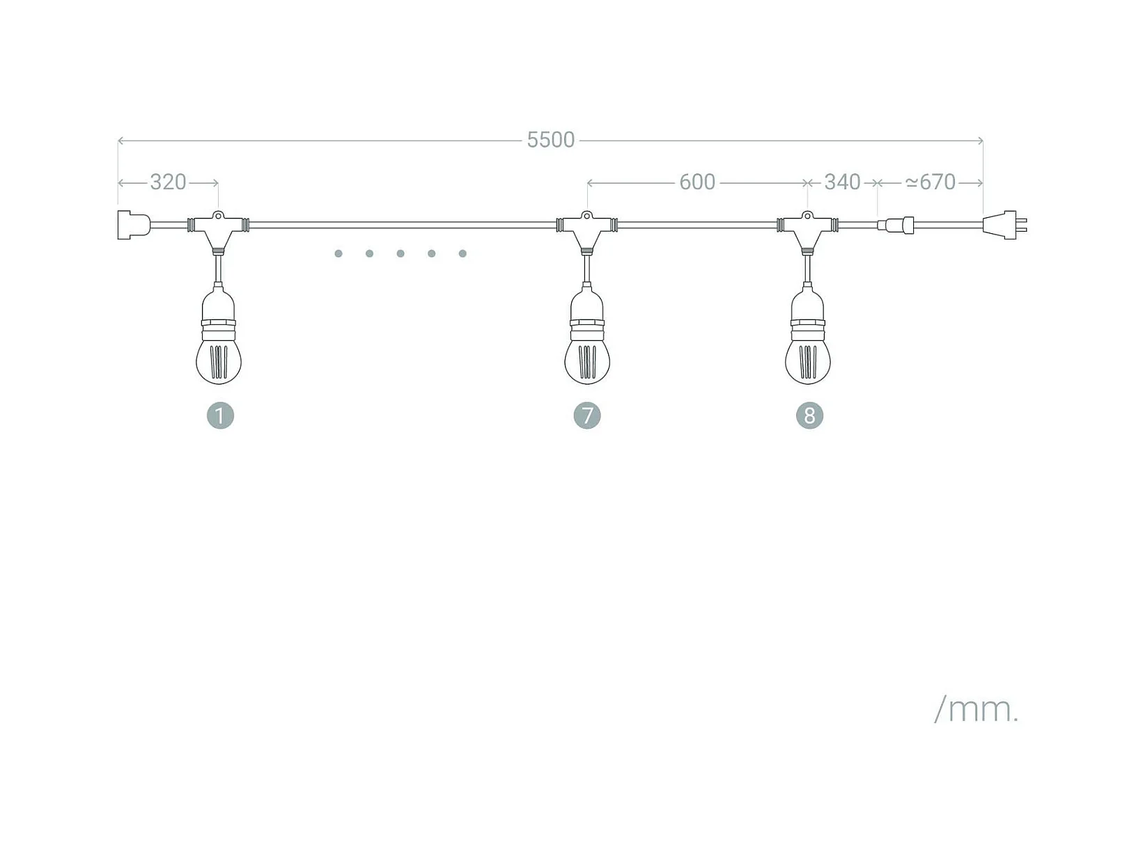 Guirnalda Exterior LED de 8 Bombillas Daku 6.5m 2700K Blanco Cálido