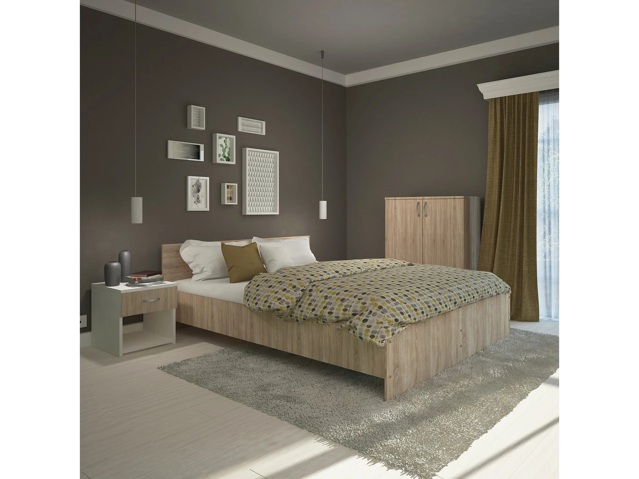 Armario con 2 puertas y 2 cajones - Blanco y natural