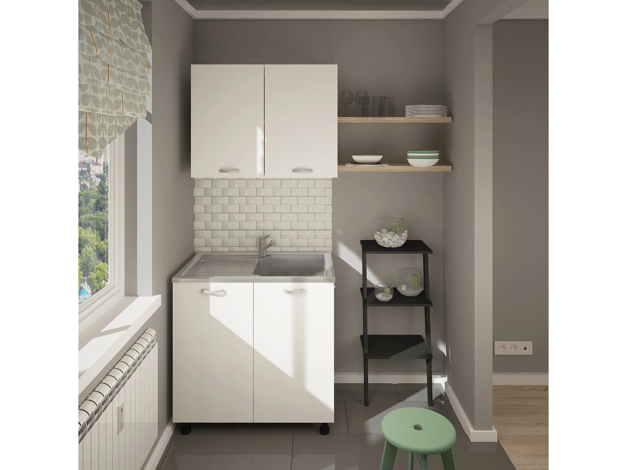 Mueble de cocina Nápoles, con fregadero 90CM A X 52.5CM P X 100CM L Blanco
