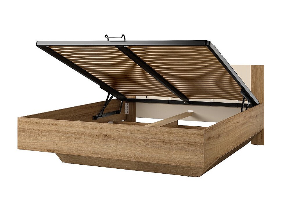 Conjunto de dormitorio industrial MILOS: Armario, cama con almacenaje 160x200, cómoda, mesitas de noche, roble crudo/negro