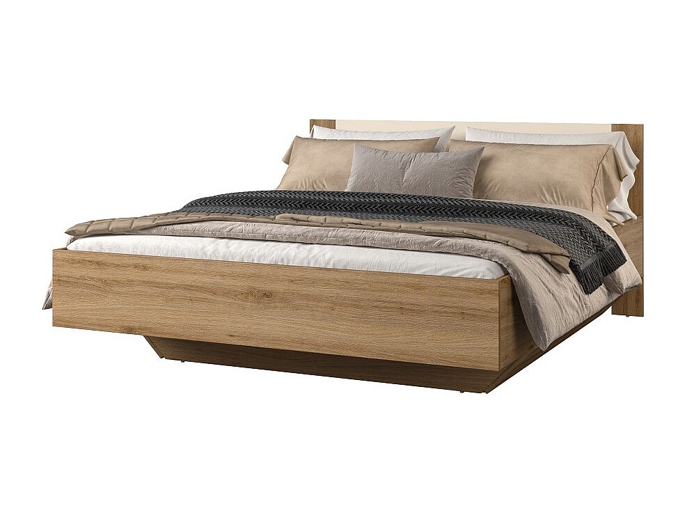 Dormitorio de diseño colección EOS: Armario, Cama de 160x200, cómoda, mesitas de noche. Color roble claro y negro.