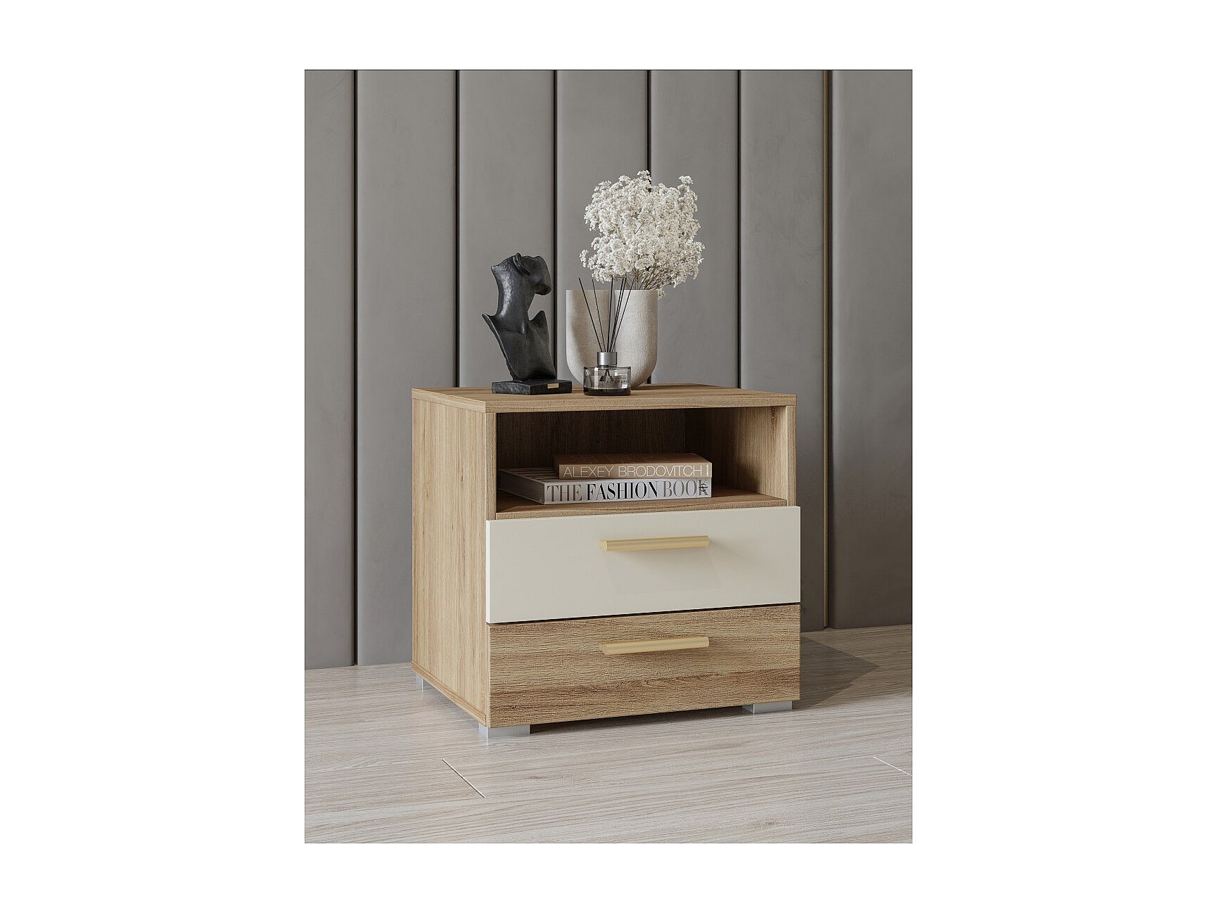Dormitorio completo FOX: Armario de 200cm, Cama de 160x200, cómoda, mesitas de noche. Color roble claro y negro.