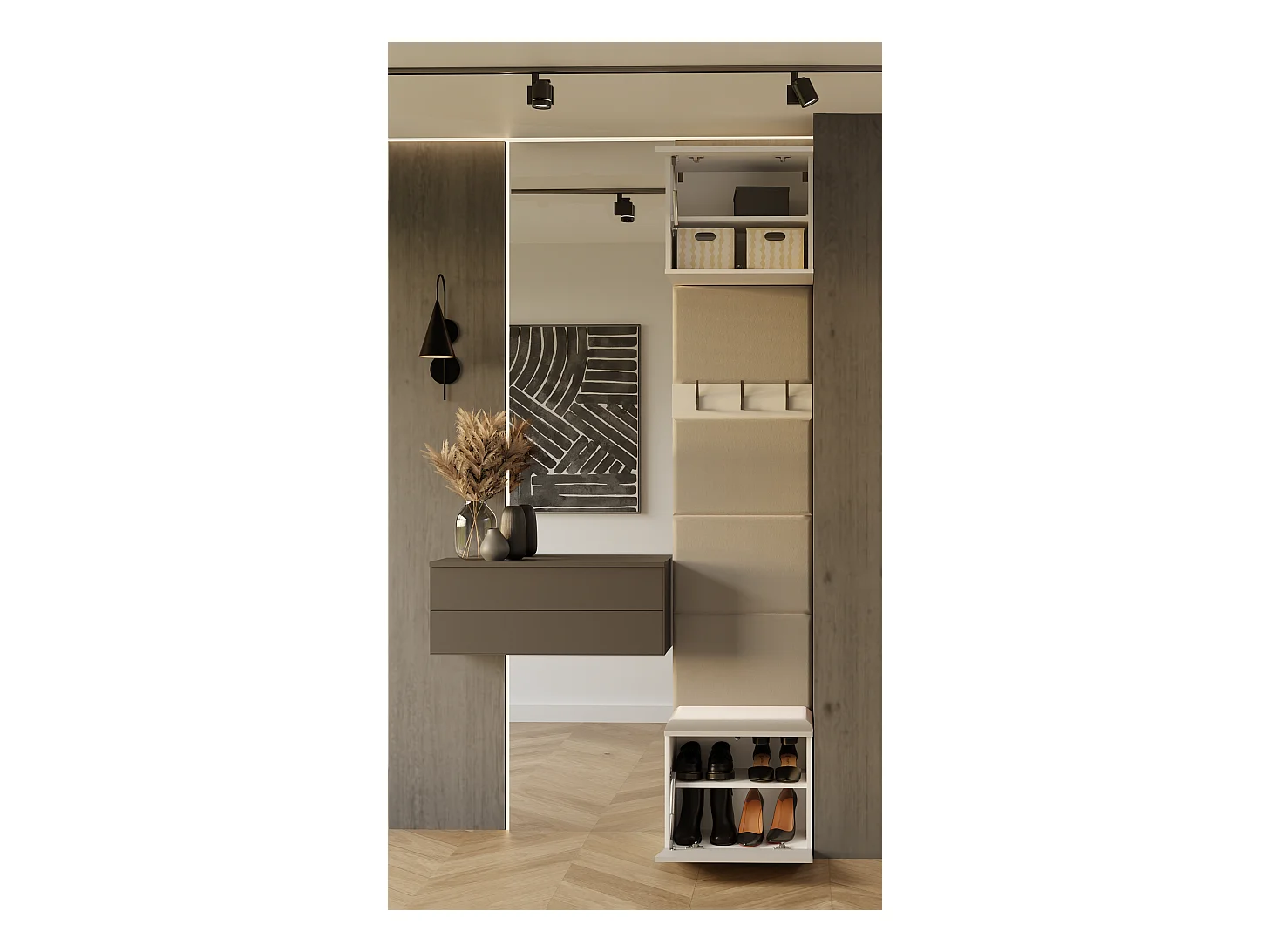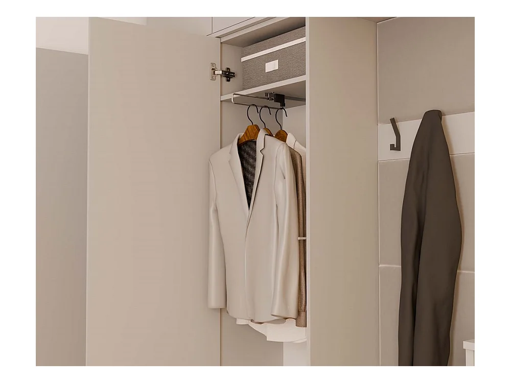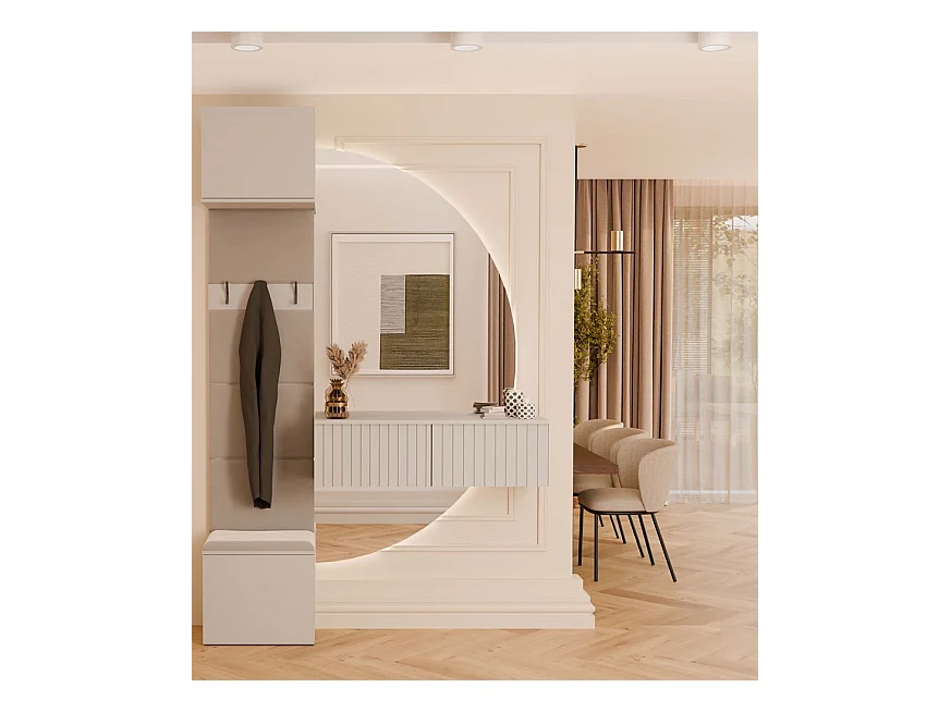 Armario recibidor de diseño color cachemira con espejo y percheros metálicos Macao