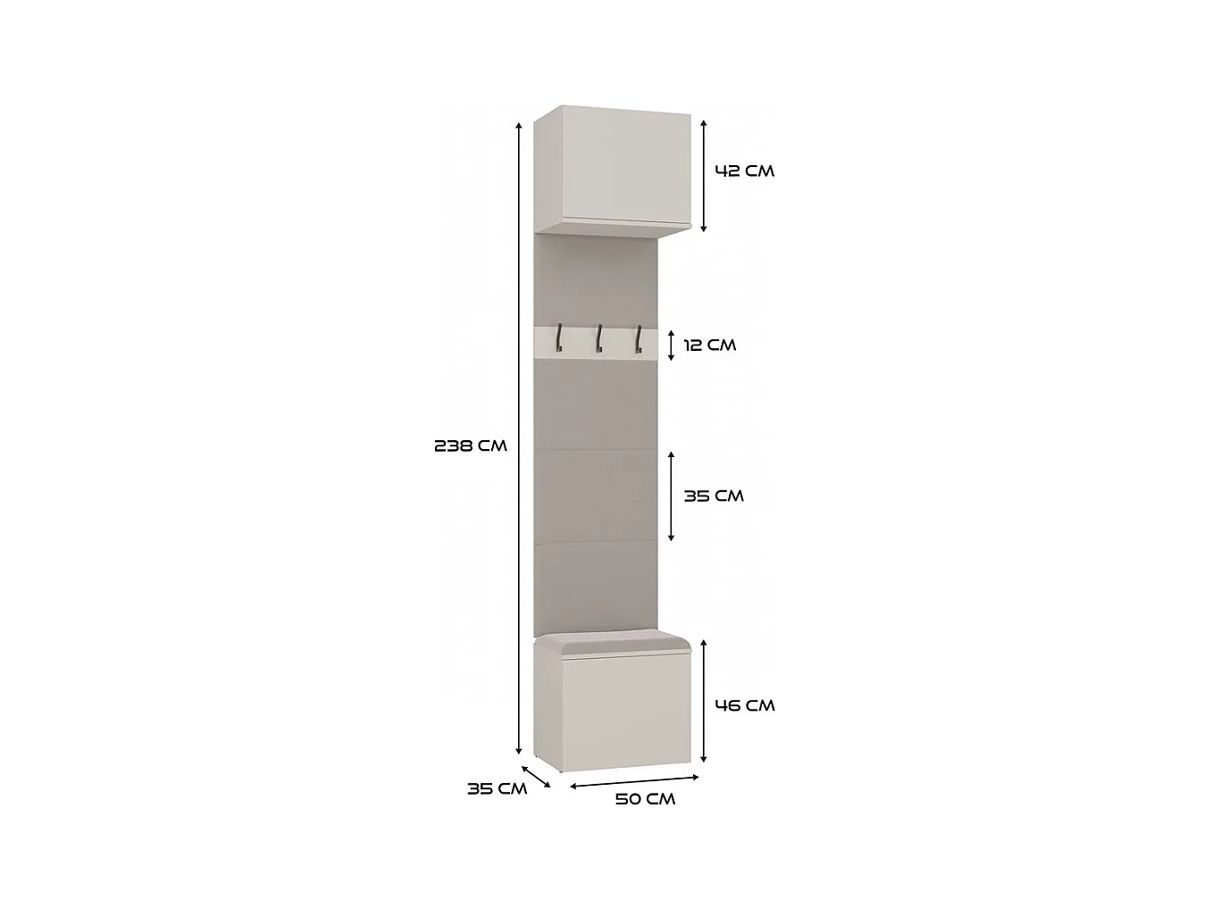 HAGA - Perchero con 3 ganchos - Guardarropa de entrada con asiento 238 x 50 x 35 cm - Beige cachemira