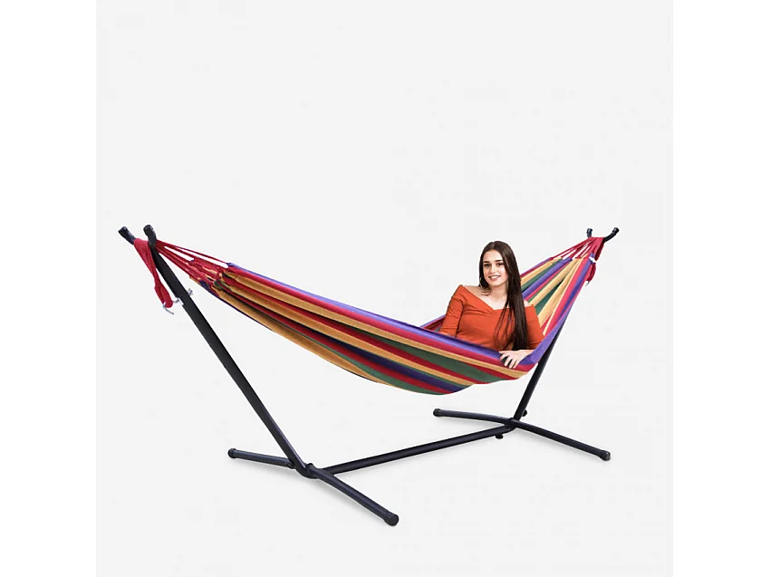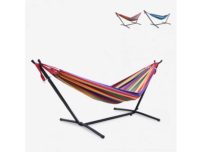 Hamaca con soporte de 2,6 m con lona azul/verde COPACABANA