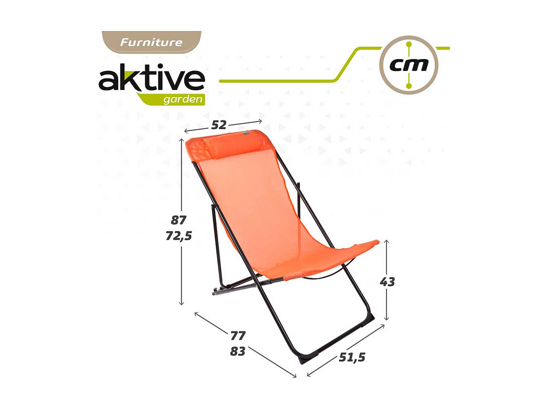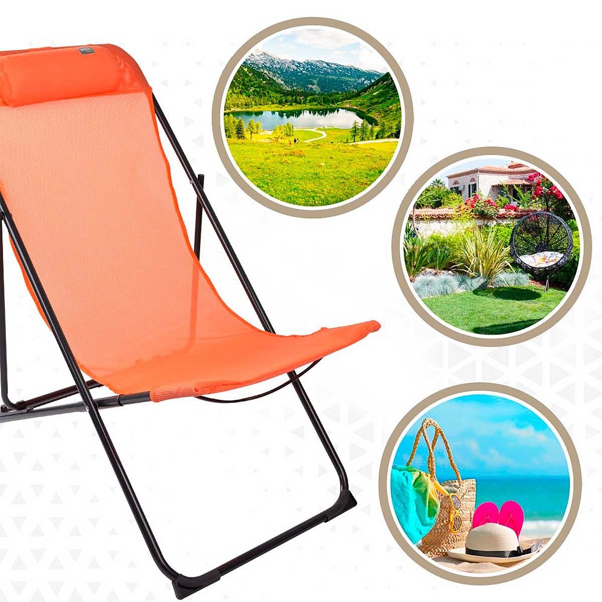 Hamaca plegable Aktive Garden 3 posiciones con reposacabezas acolchado naranja