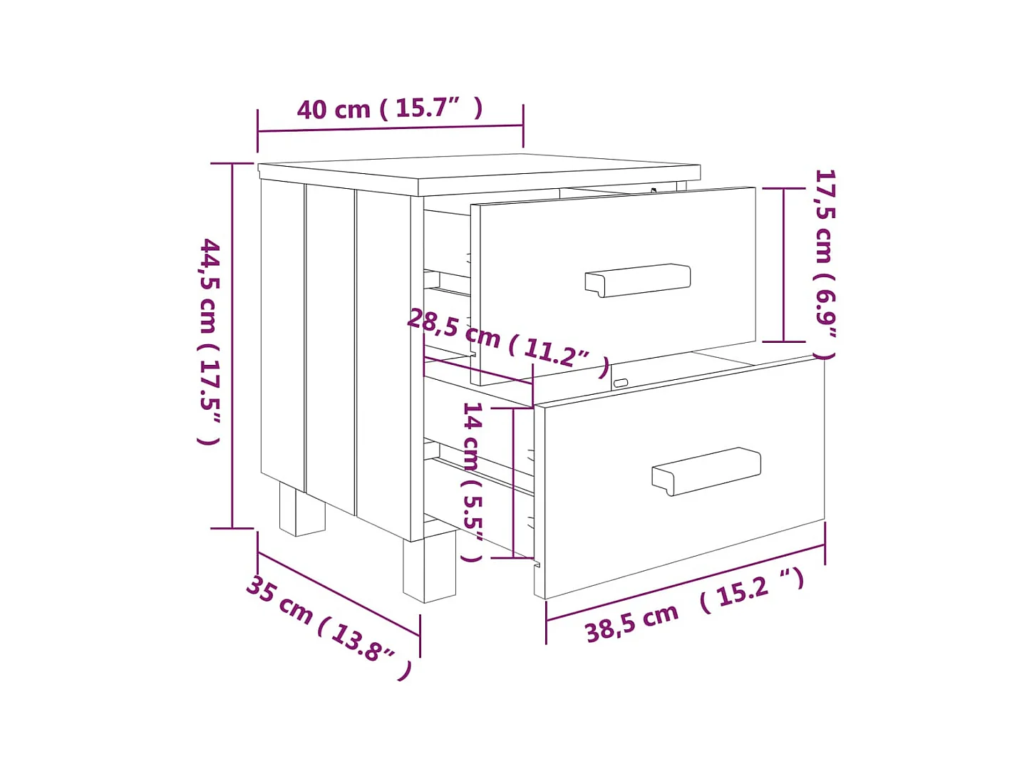 HAMAR Mesitas de noche 2 uds Blanco 40x35x44,5 cm Madera maciza