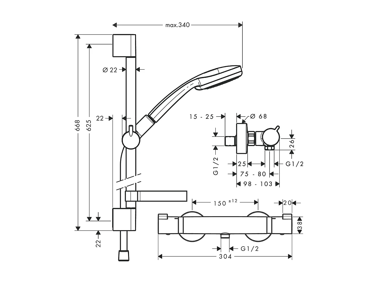 HANSGROHE Conjunto de ducha Croma 100 + Mezclador termostático Ecostat Comfort + barra de ducha 65 cm