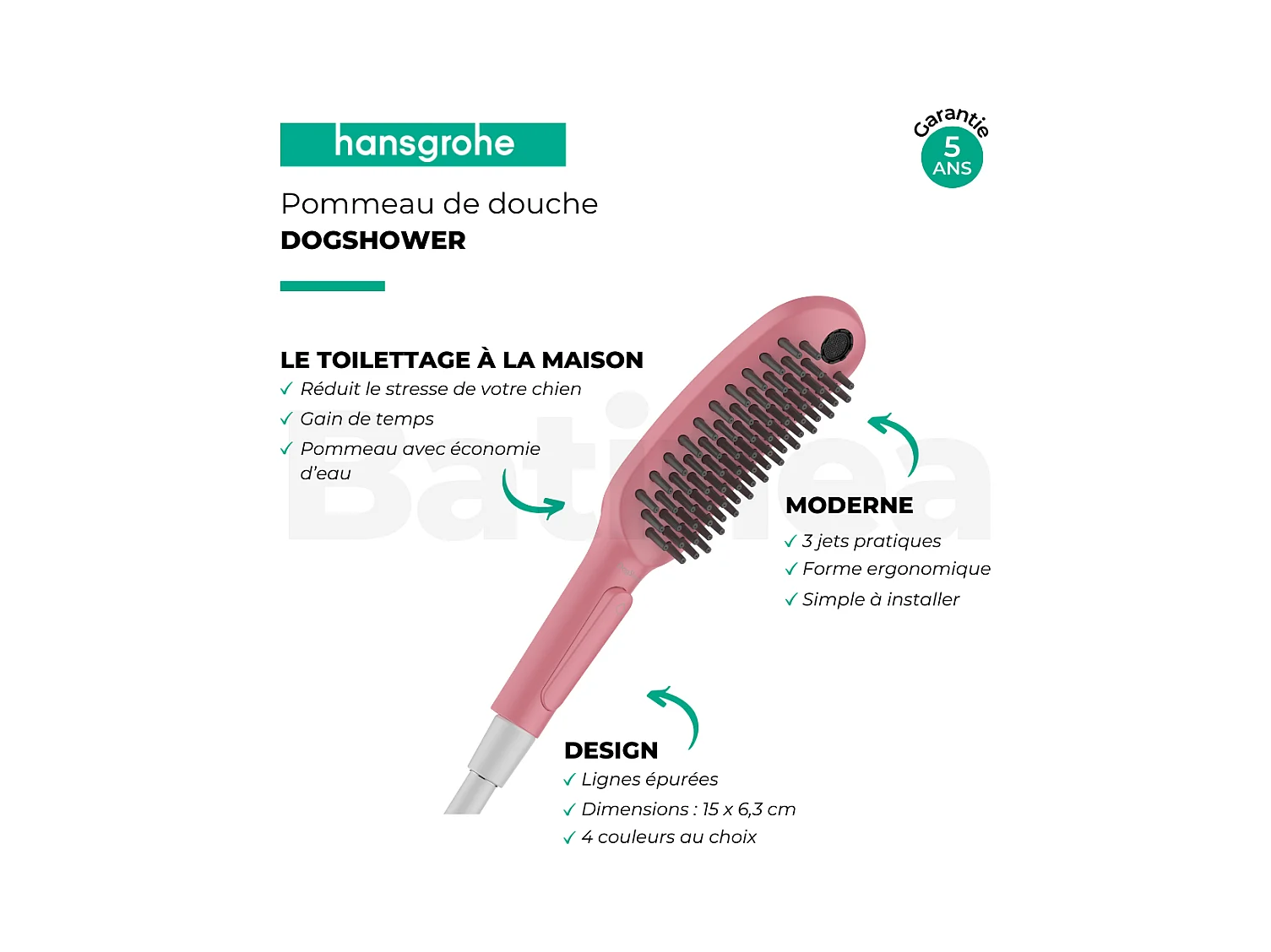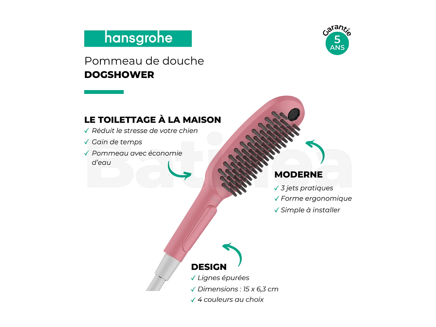 HANSGROHE DogShower Rociador de ducha para perros con 3 chorros Rosa