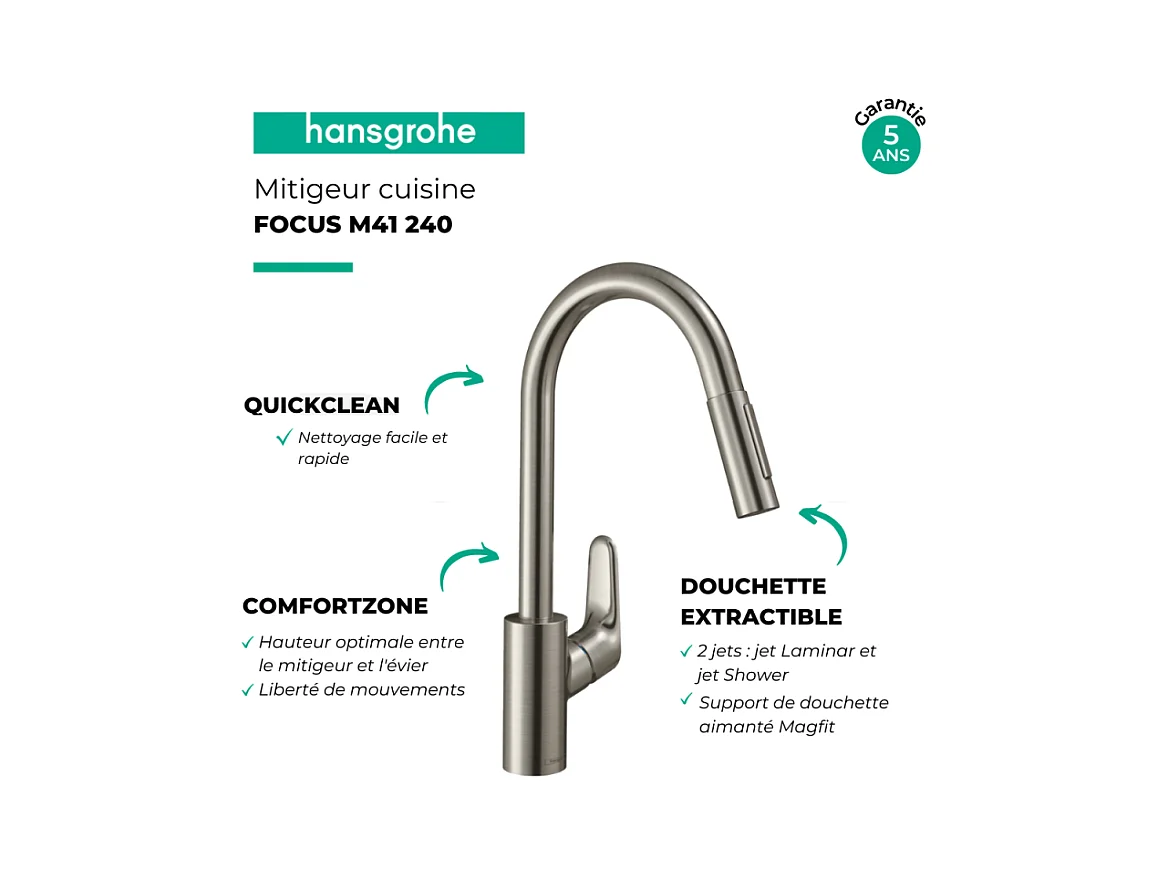 Grifo de cocina con ducha HANSGROHE Focus M41 240 2 chorros aspecto acero inoxidable