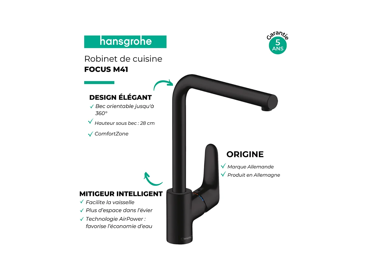 HANSGROHE Focus M41 280 grifo de cocina negro mate