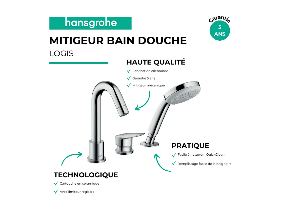 HANSGROHE Logis Mezclador de bañera y ducha con 3 orificios cromado