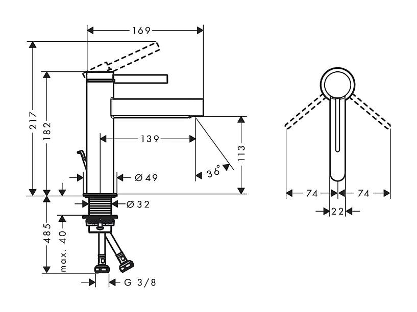 HANSGROHE Mezclador de lavabo 110 con extraíble y vaciador Finoris negro mate