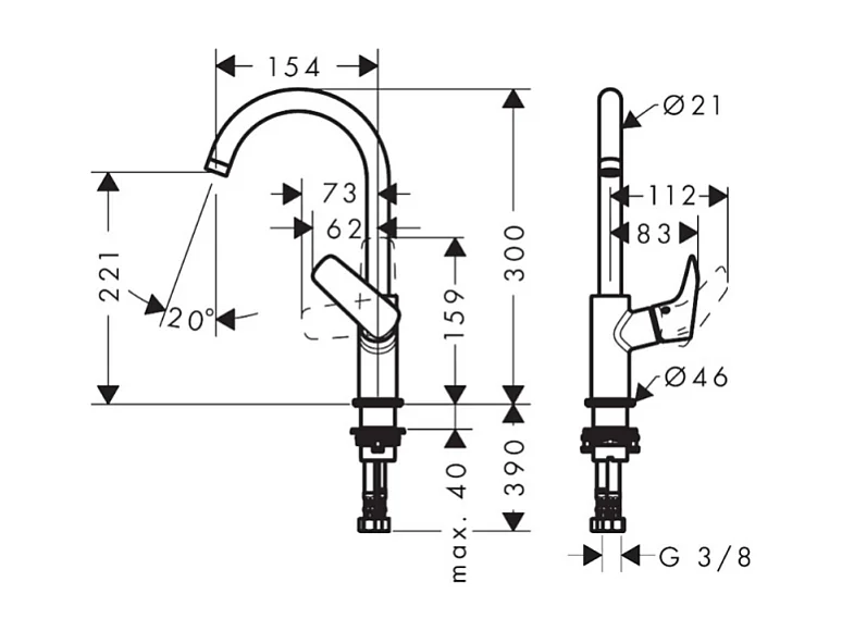 HANSGROHE Logis 210 Mezclador de lavabo con caño alto sin extraíble ni desagüe