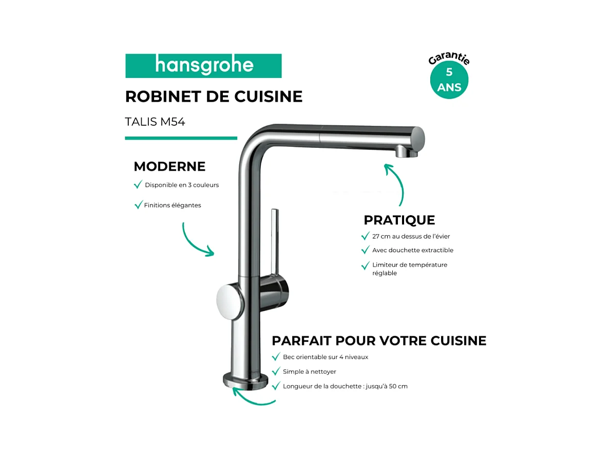 Grifo de cocina con ducha HANSGROHE Talis M54 270 cromo