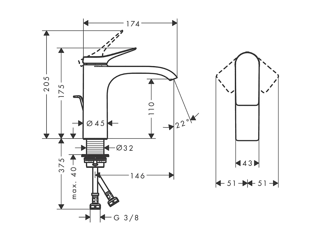 HANSGROHE Mezclador de lavabo 110 con extraíble y desagüe negro mate
