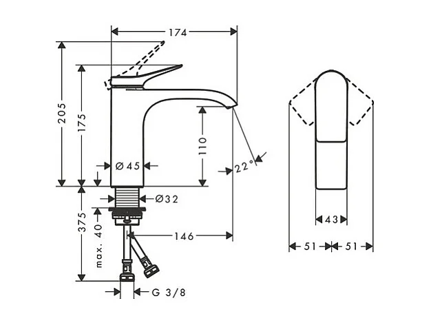 HANSGROHE Mezclador de lavabo 110 sin extraíble ni desagüe negro mate