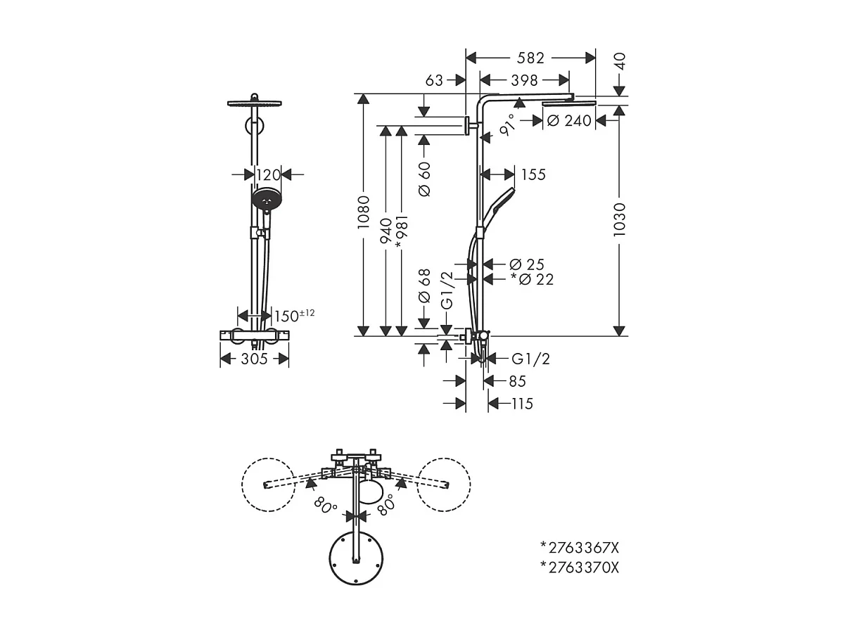HANSGROHE Raindance Select S 240 columna de ducha termostática de bronce cepillado