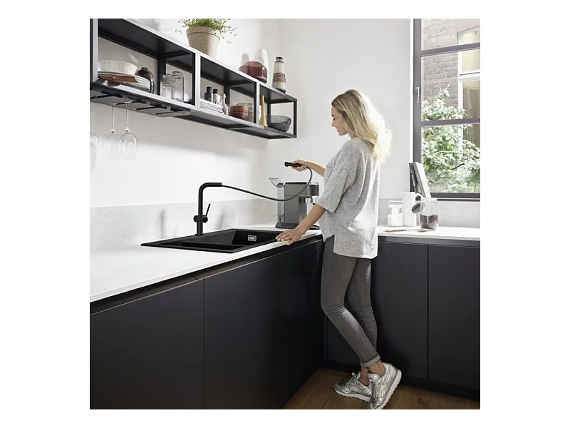 Foga Mezclador de fregadero con teleducha extraíble en negro mate Essebagno