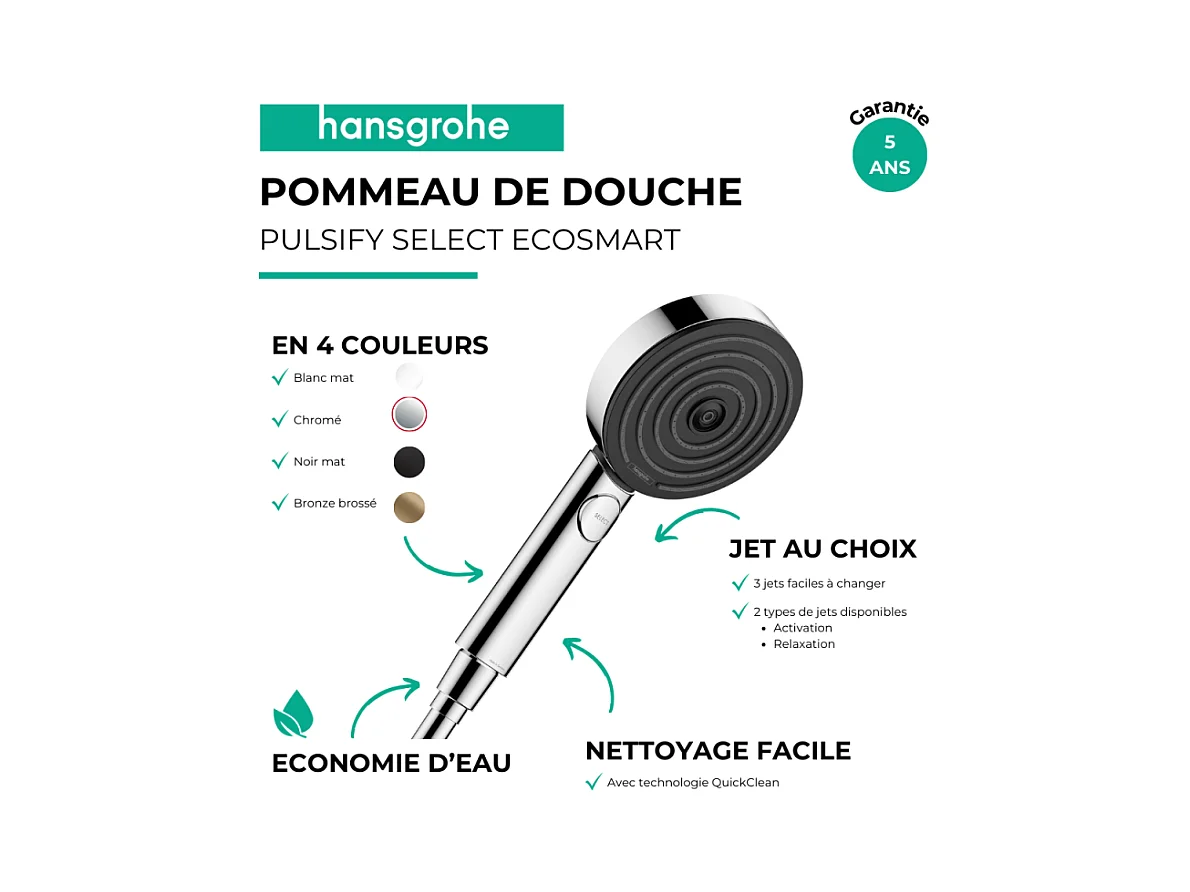 HANSGROHE Pulsify 105 EcoSmart+ rociador de ducha cromado