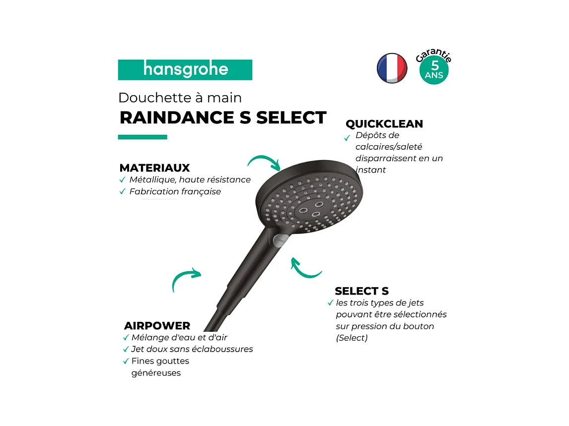 HANSGROHE Teleducha Raindance Select S 120 3jet PowderRain negro mate
