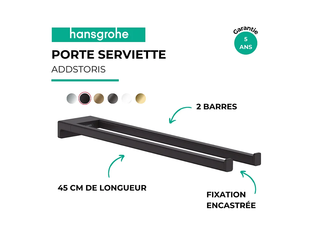 HANSGROHE Toallero de dos brazos 450 mm negro mate AddStoris
