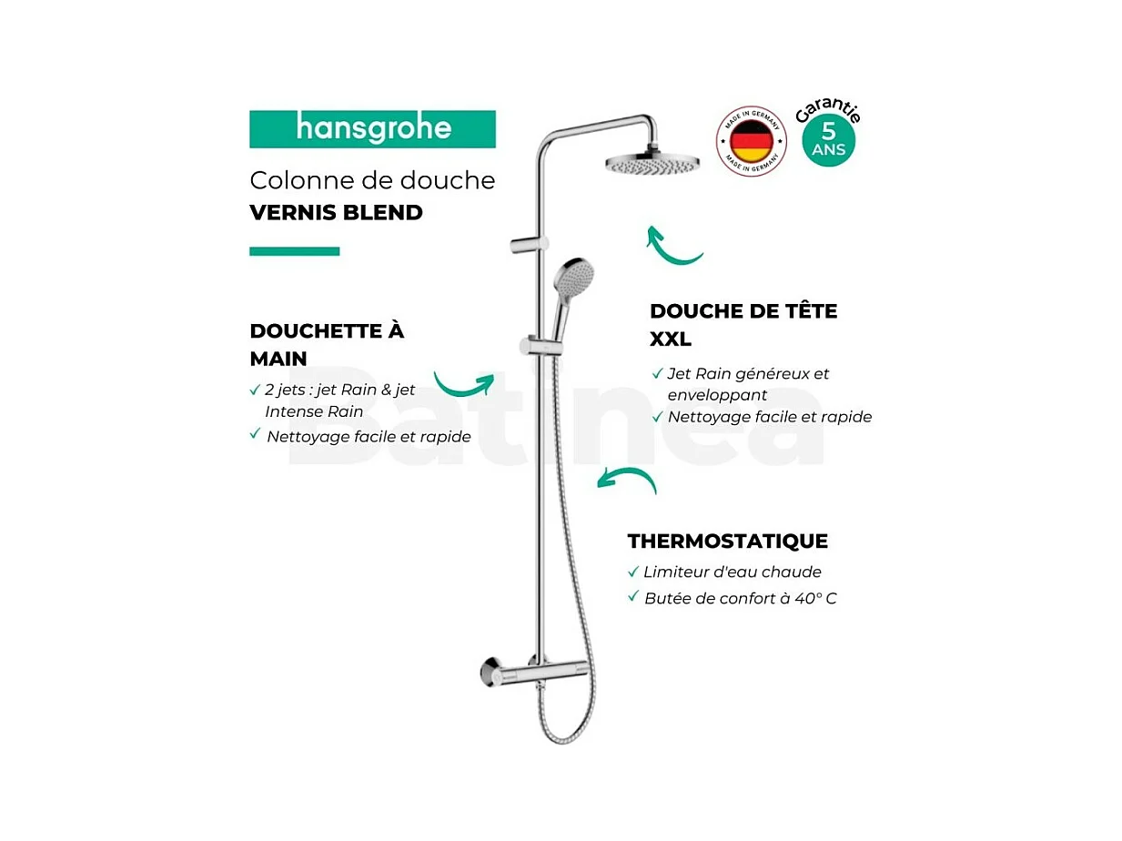 Columna de ducha o ducha de baño sin mezclador HANSGROHE Vernis Blend 200 cromo