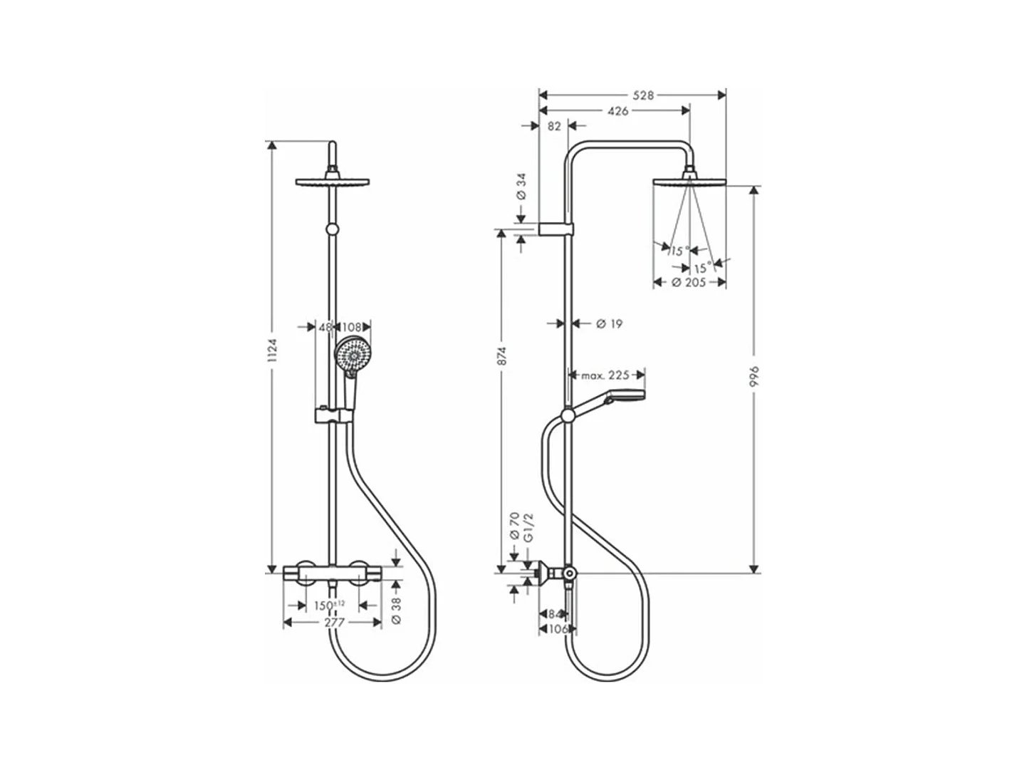 Columna de ducha o ducha de baño sin mezclador HANSGROHE Vernis Shape 230 negro mate