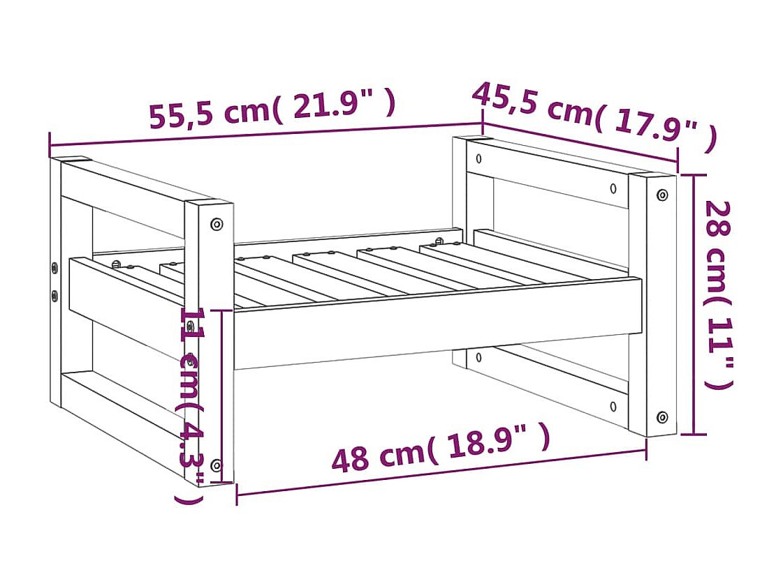 Varyn Cama para perros madera maciza de pino negro 65,5x50,5x70 cm