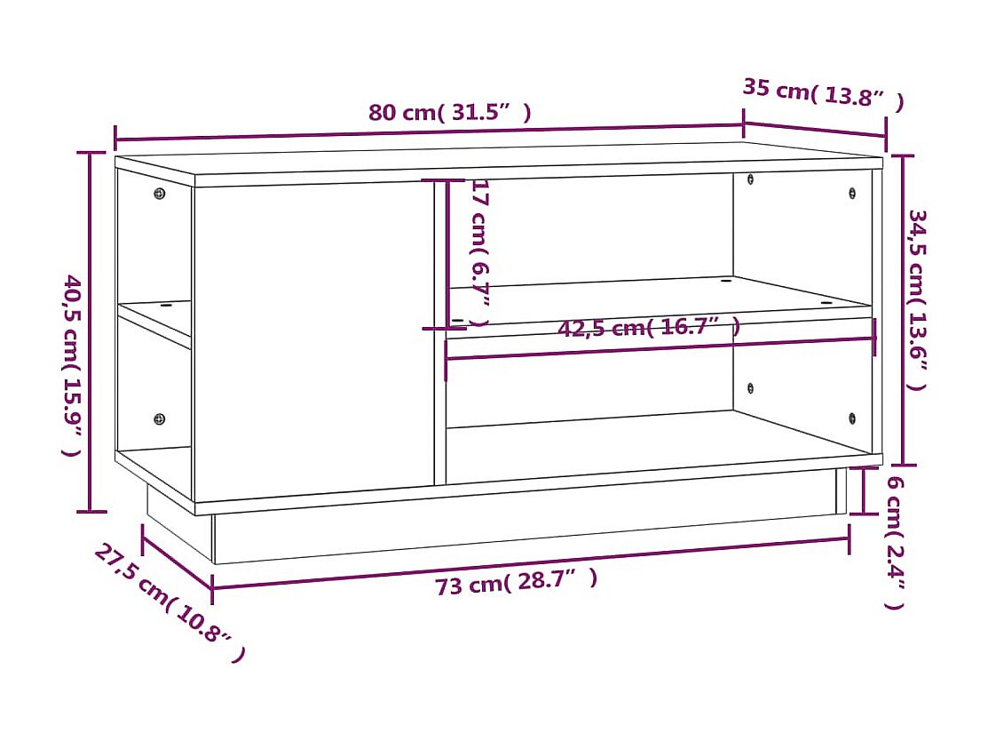 Harry Dean Mueble de TV madera maciza de pino marrón miel 80x35x40,5 cm