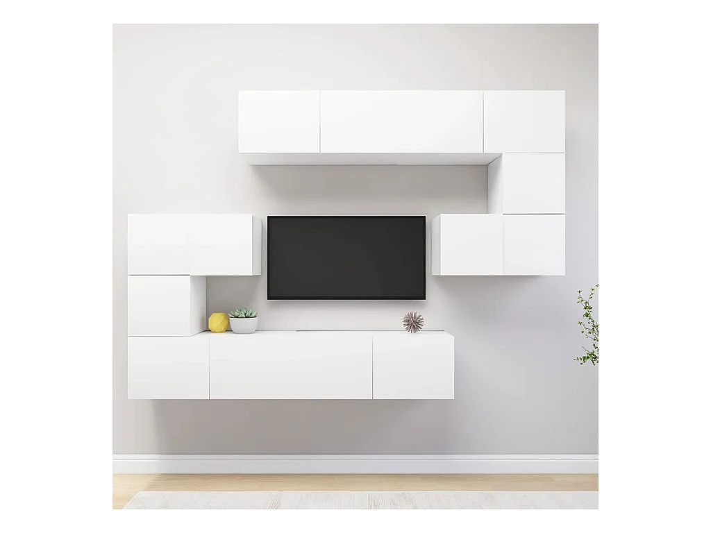 Hector Set de mueble para TV de 8 piezas madera de ingeniería blanco