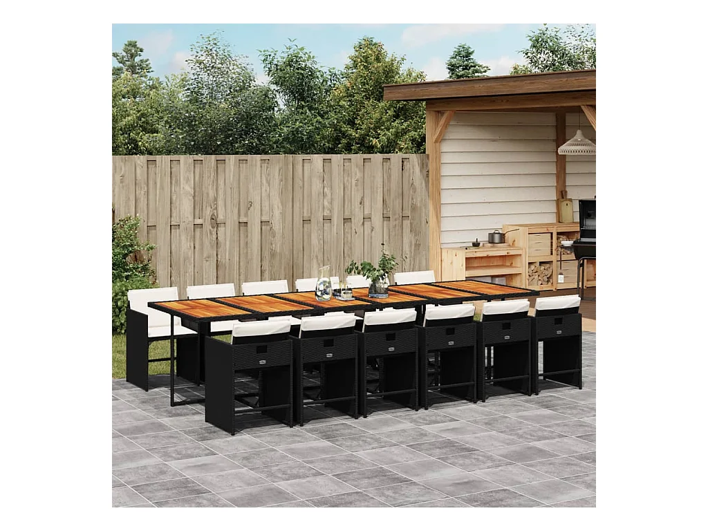 An Daingean Set comedor de jardín con cojines 13 pzas ratán sintético negro