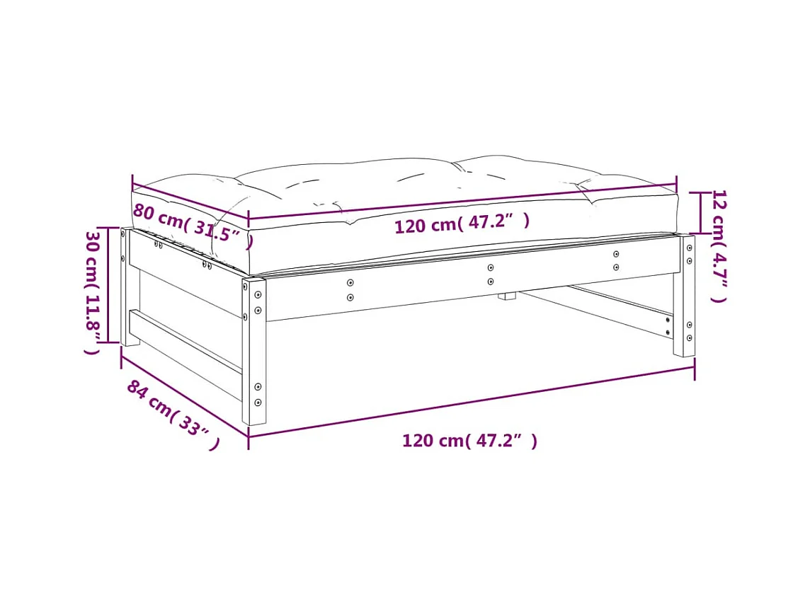 Helyndra Taburete de jardín madera maciza de pino 120x80 cm