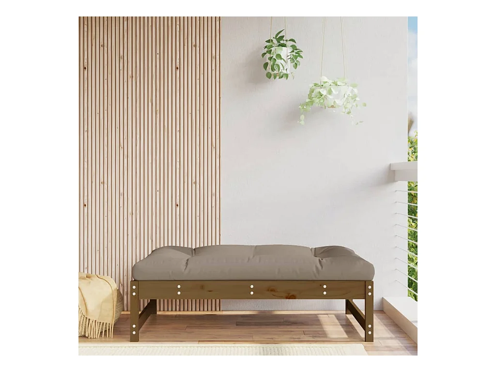 Livan Taburete de jardín con cojín madera maciza de pino marrón miel