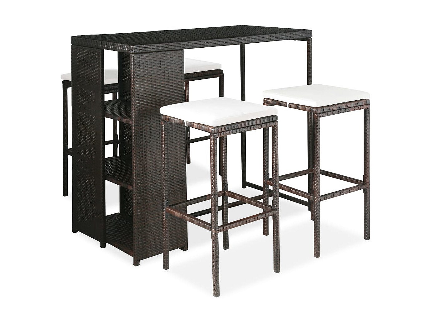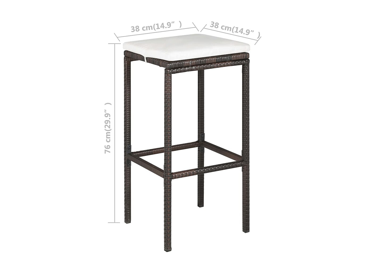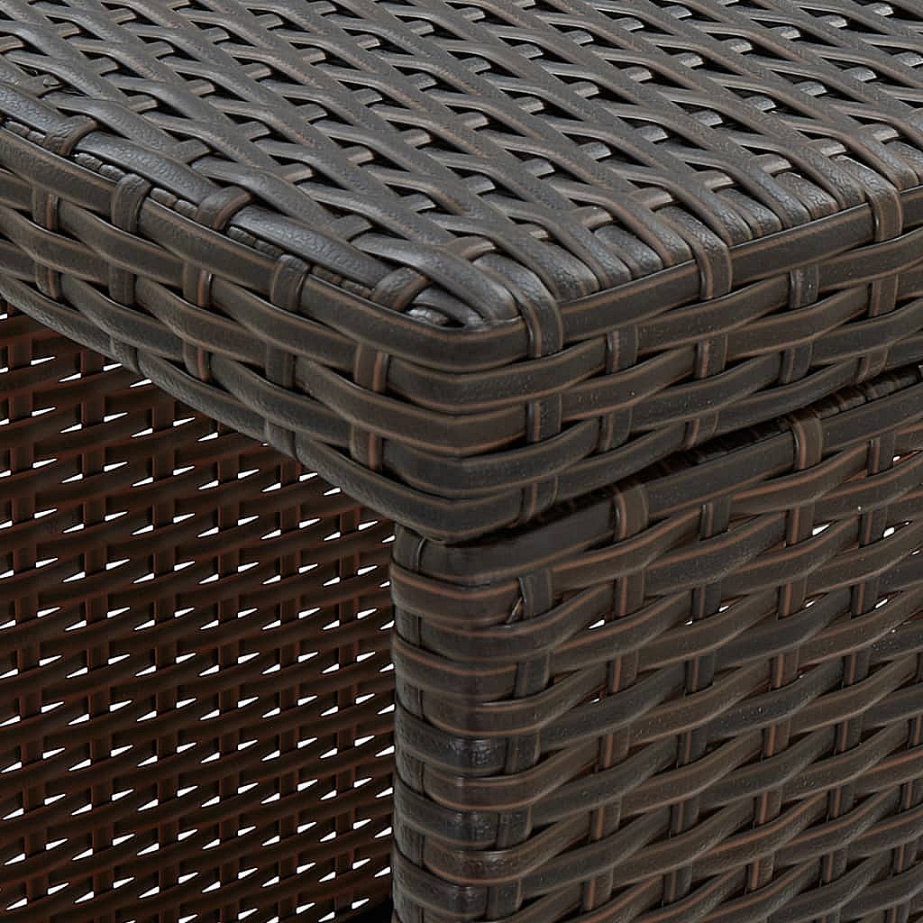 Este set de bar de jardín de ratán tiene un diseño elegante y será el centro de atención de tu jardín, patio o terraza. Hecho de ratán PE resistente a la intemperie e impermeable, este conjunto mesa y sillas de bar es fácil de limpiar, resistente y adecuado para el uso diario. La estructura de acero con recubrimiento en polvo hace que la mesa y los taburetes sean muy resistentes y duraderas. Gracias a su construcción ligera, todos los elementos son fáciles de mover. Los cojines gruesos y extraíbles del asiento son muy cómodos. Las fundas de los cojines tienen cremalleras y se pueden quitar y lavar fácilmente. Nota: Te recomendamos tapar el mueble en condiciones de lluvia, nieve y heladas.