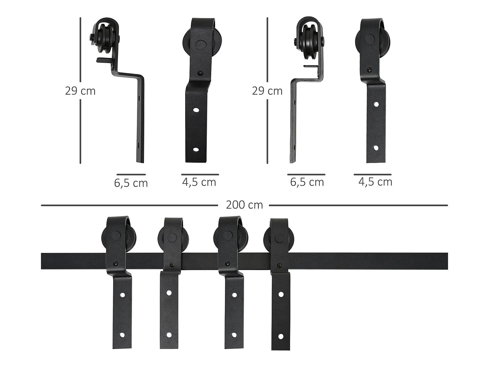 Kit de accesorios para puerta corredera negro 200x4x0,6cm HOMCOM