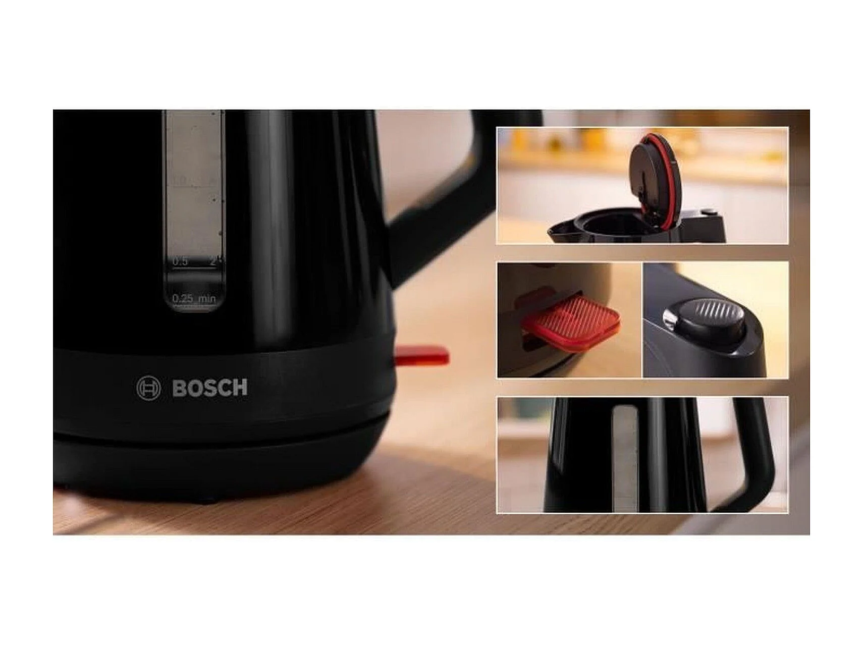 Hervidor MyMoment - Negro - Capacidad de 1,7 L - Base giratoria de 360° - Filtro antical