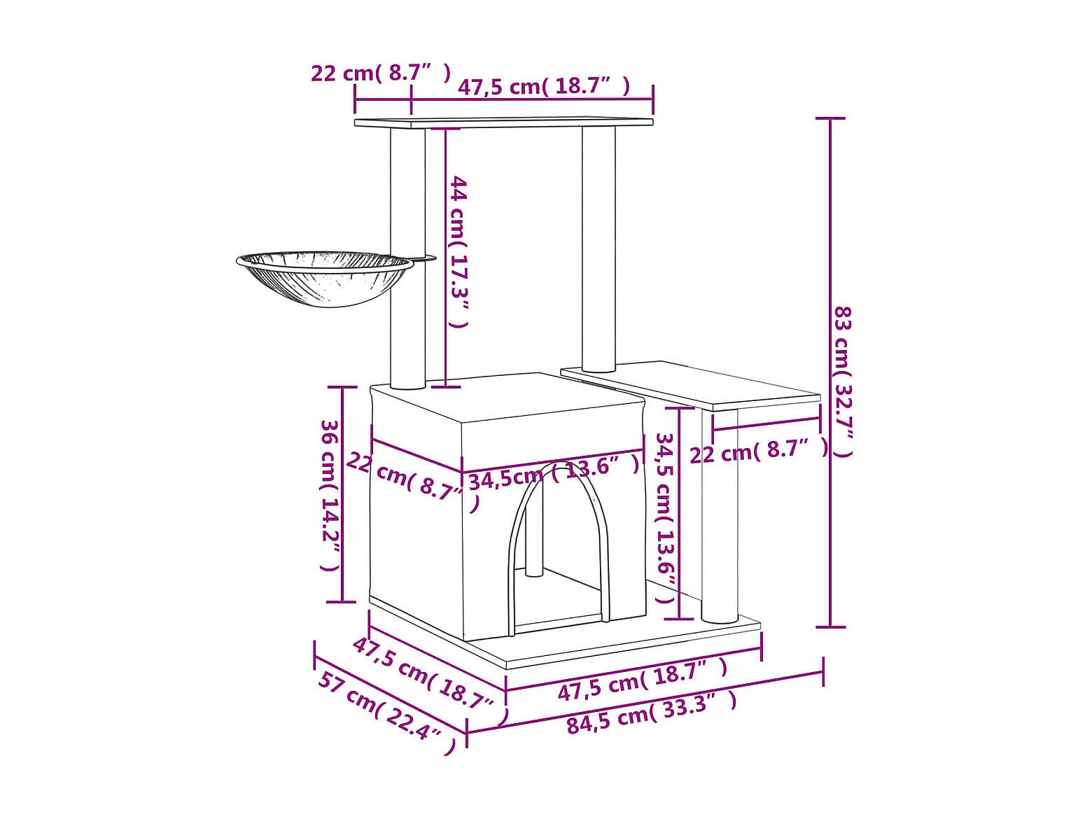 Nylara Rascador para gatos con postes de sisal gris claro 83 cm