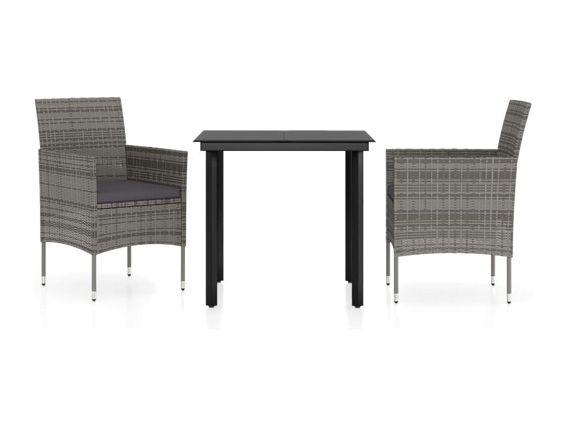 Vernon Juego de comedor de jardín 3 piezas con cojines gris y negro