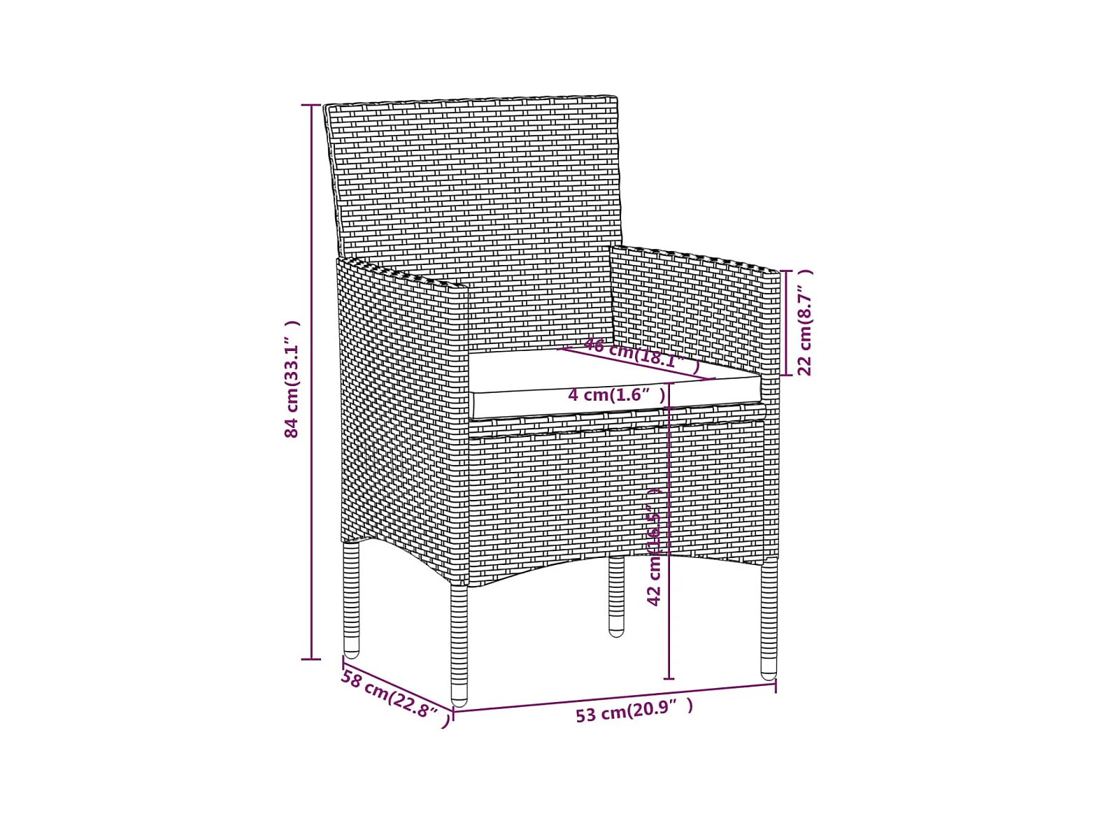 Giovanni Carlo Set comedor jardín 5 pzas y cojines acero ratán sintético negro