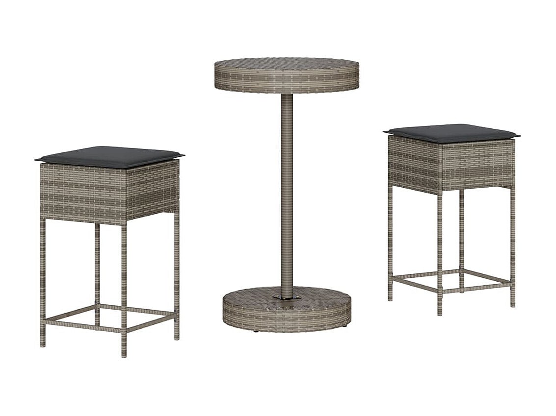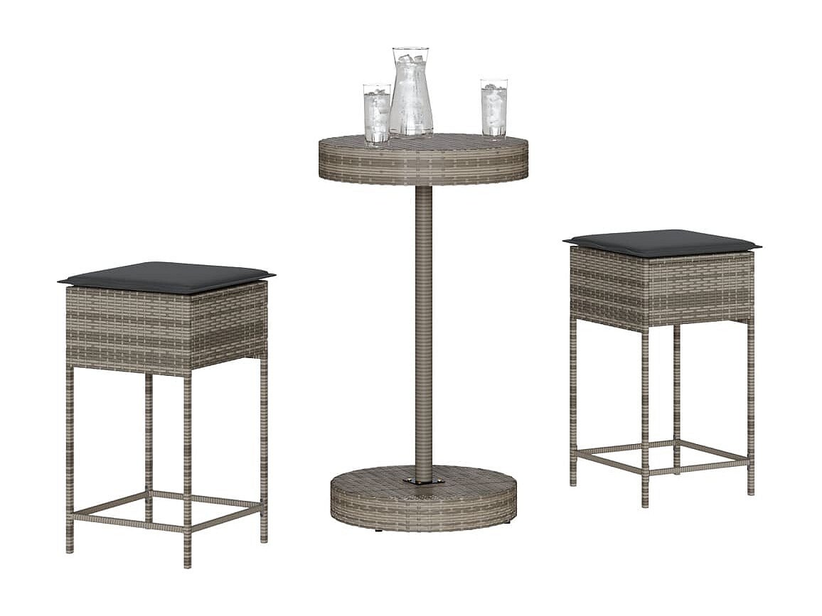 Sandra Juego de bar de jardín de 3 piezas con cojines ratán PE gris