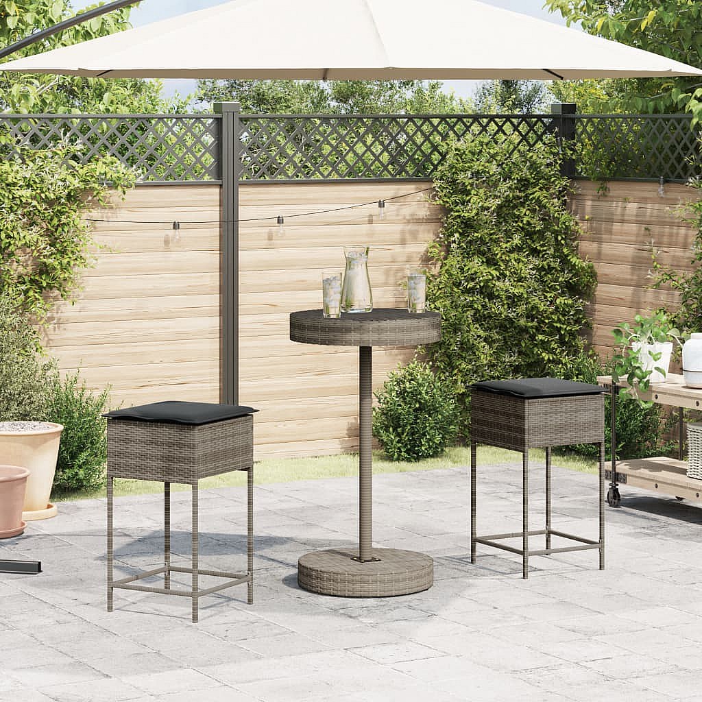 Kella Juego de bar de jardín de 3 piezas con cojines ratán PE gris