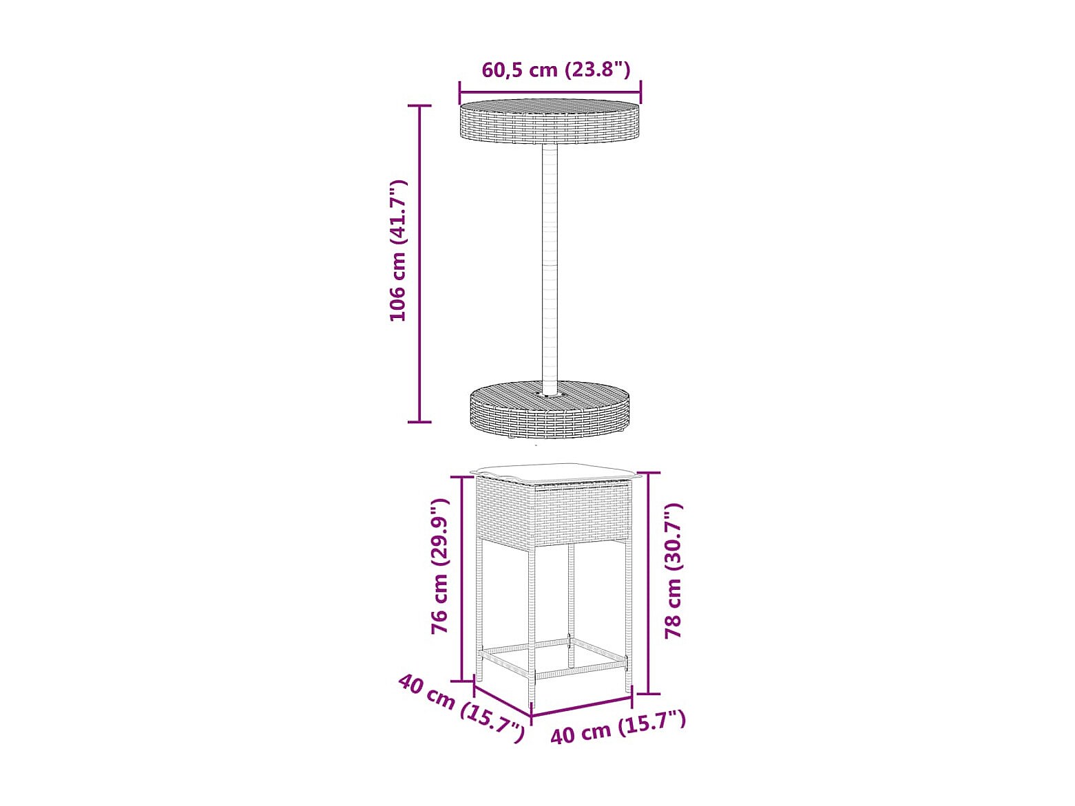Inarin Juego de bar de jardín de 3 piezas con cojines ratán PE gris