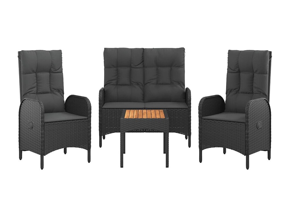 Holbaek Juego comedor jardín 4 piezas con cojines ratán sintético negro