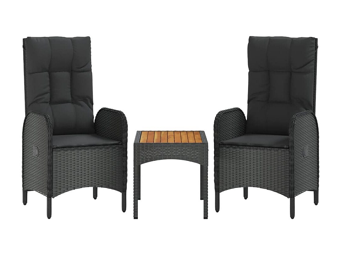 Garden Furniture - Juego comedor jardín 3 pzas madera acacia ratán sintético negro