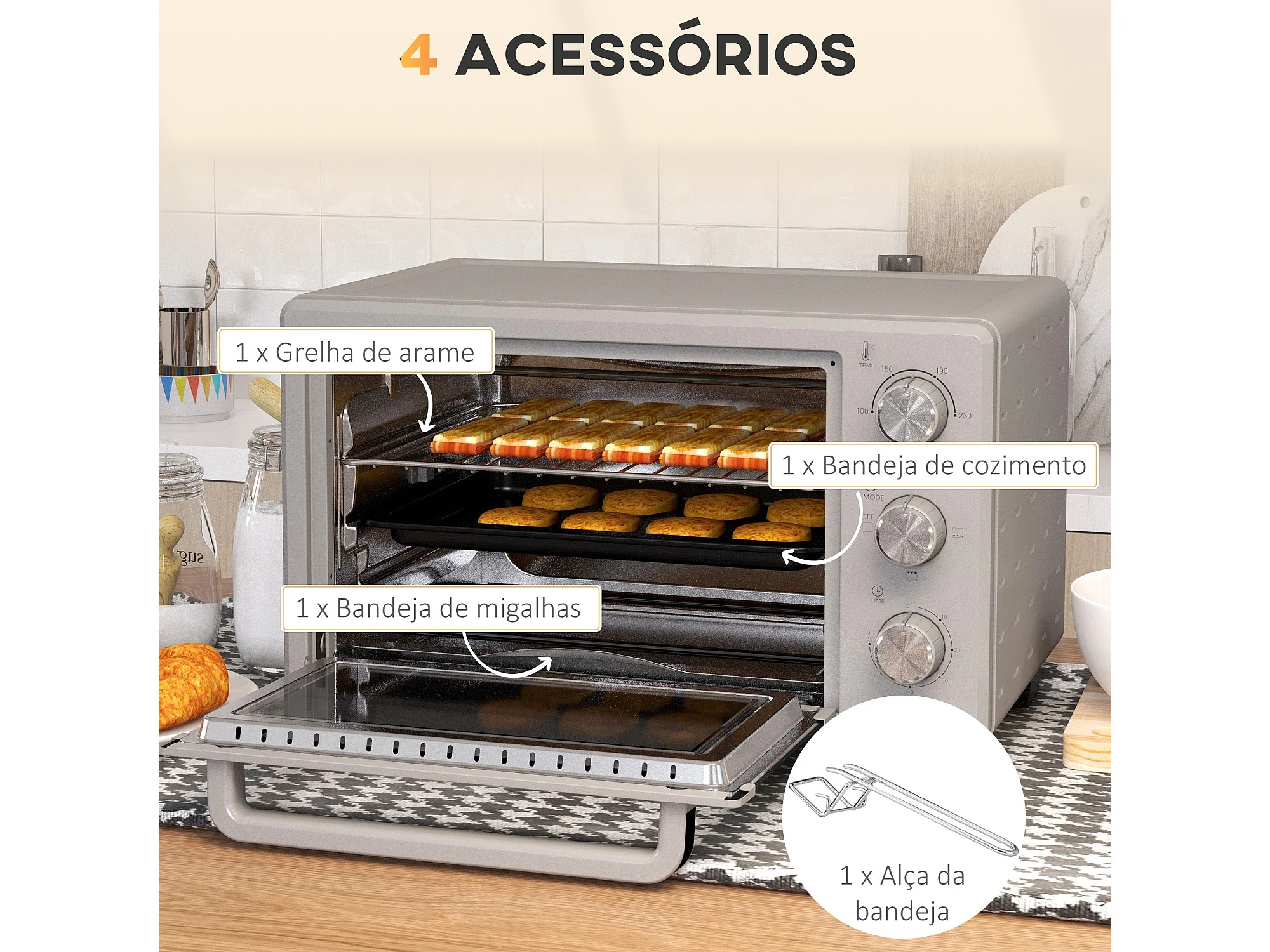 Horno de sobremesa Alec Homcom 1400W 21L 3 modos + temporizador gris 46 cm